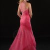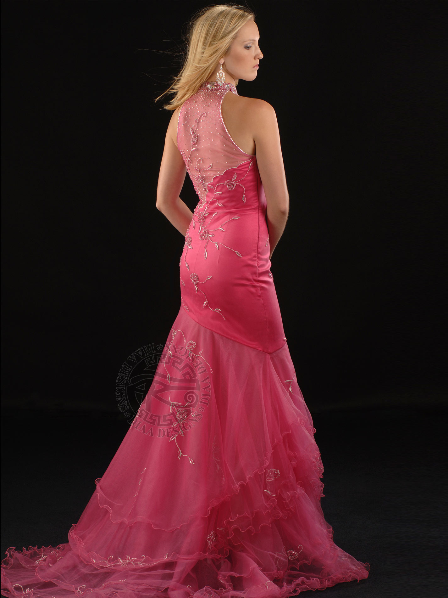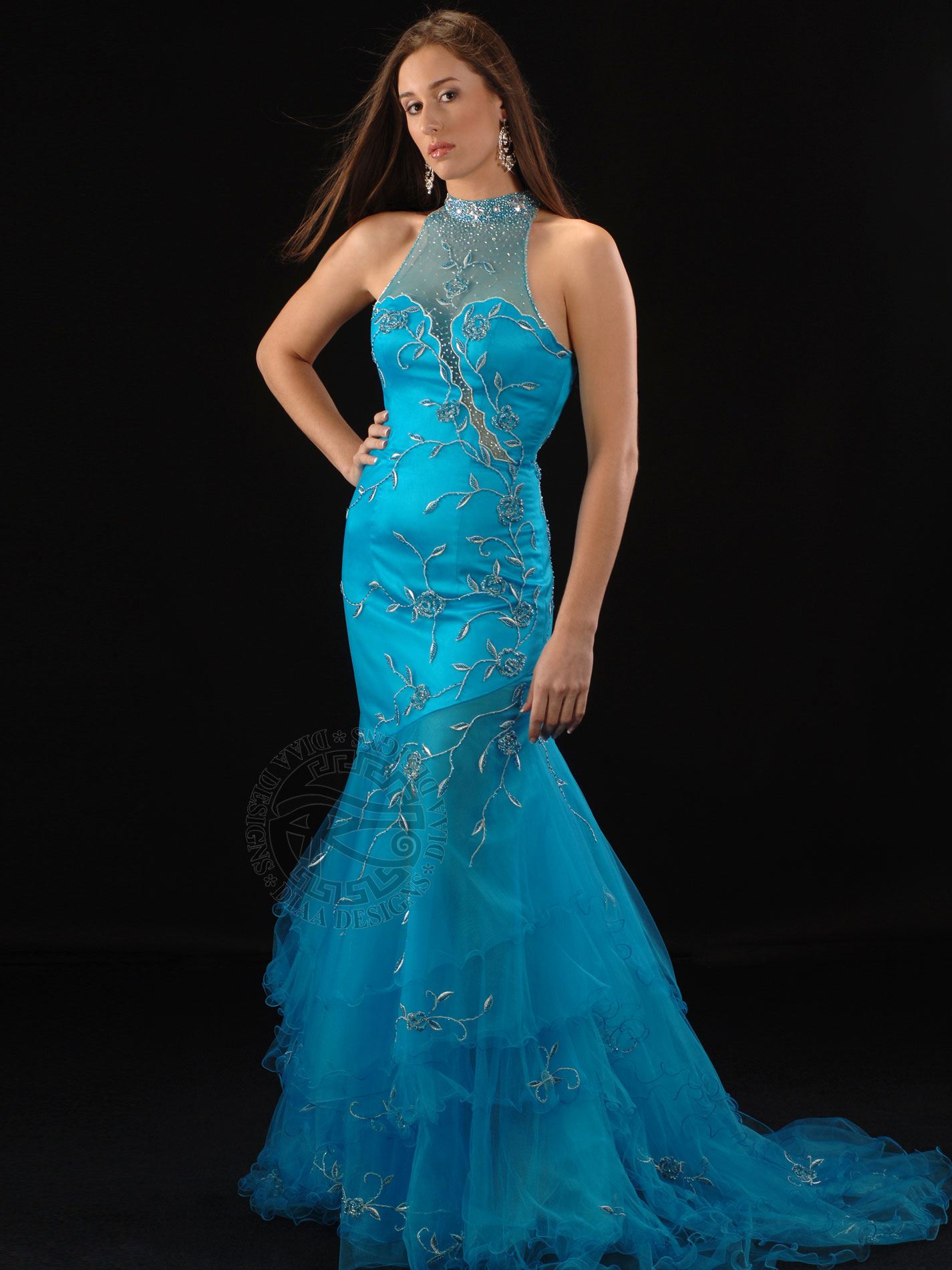 Wow everyone in this elegant mermaid dress that features a sheer high collar sweetheart neckline, embellished with scattered embroidered flowers with beads and stones all over front and back and over see-through Net layered skirt. The back is also see-through high with a side zipper and long layered train. Absolutely elegant!