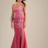 Shine like super star in this Sexy one shoulder strap fitted dress with star bursts beads and stones embellishment on upper front and back. It has a high front slit with dangling lines of beads hanging over, and open low back with beaded straps connecting at center of the back, also has dangling beads hanging over the neckline strap with a beautiful scattered beaded train.