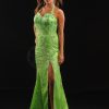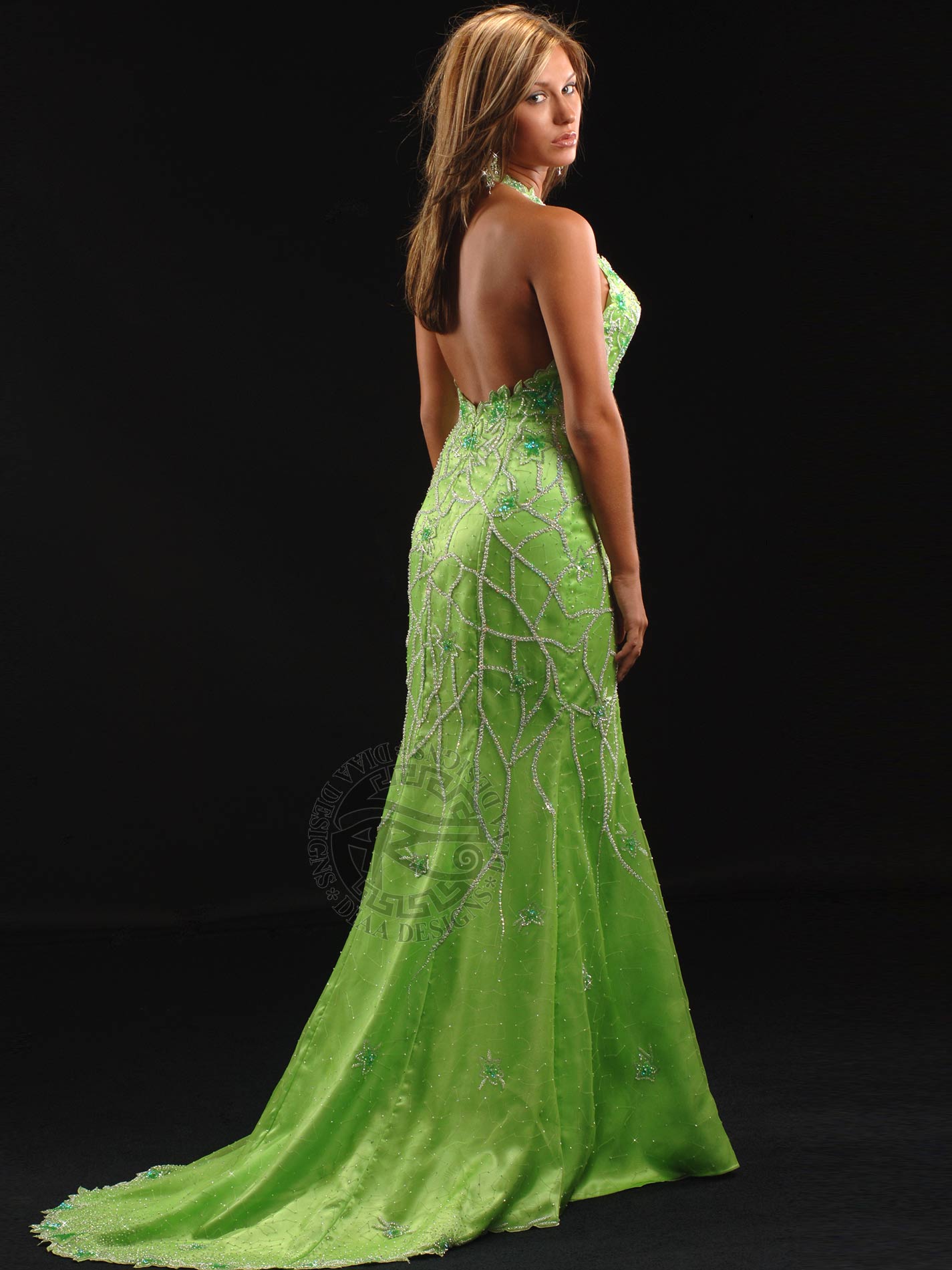 Shine like a star with this sweetheart halter dress that features sparkling raised beads and rhinestones design on front and back areas. This dress has a high side front slit, a center back zipper, a stunning shaped back with a sweeping shaped train.