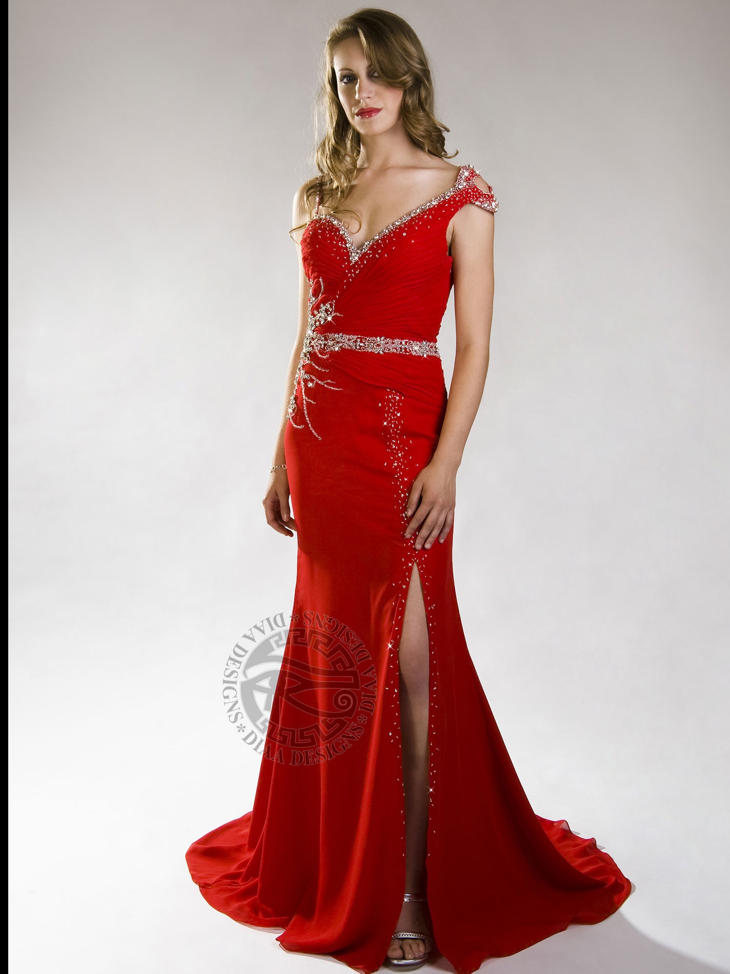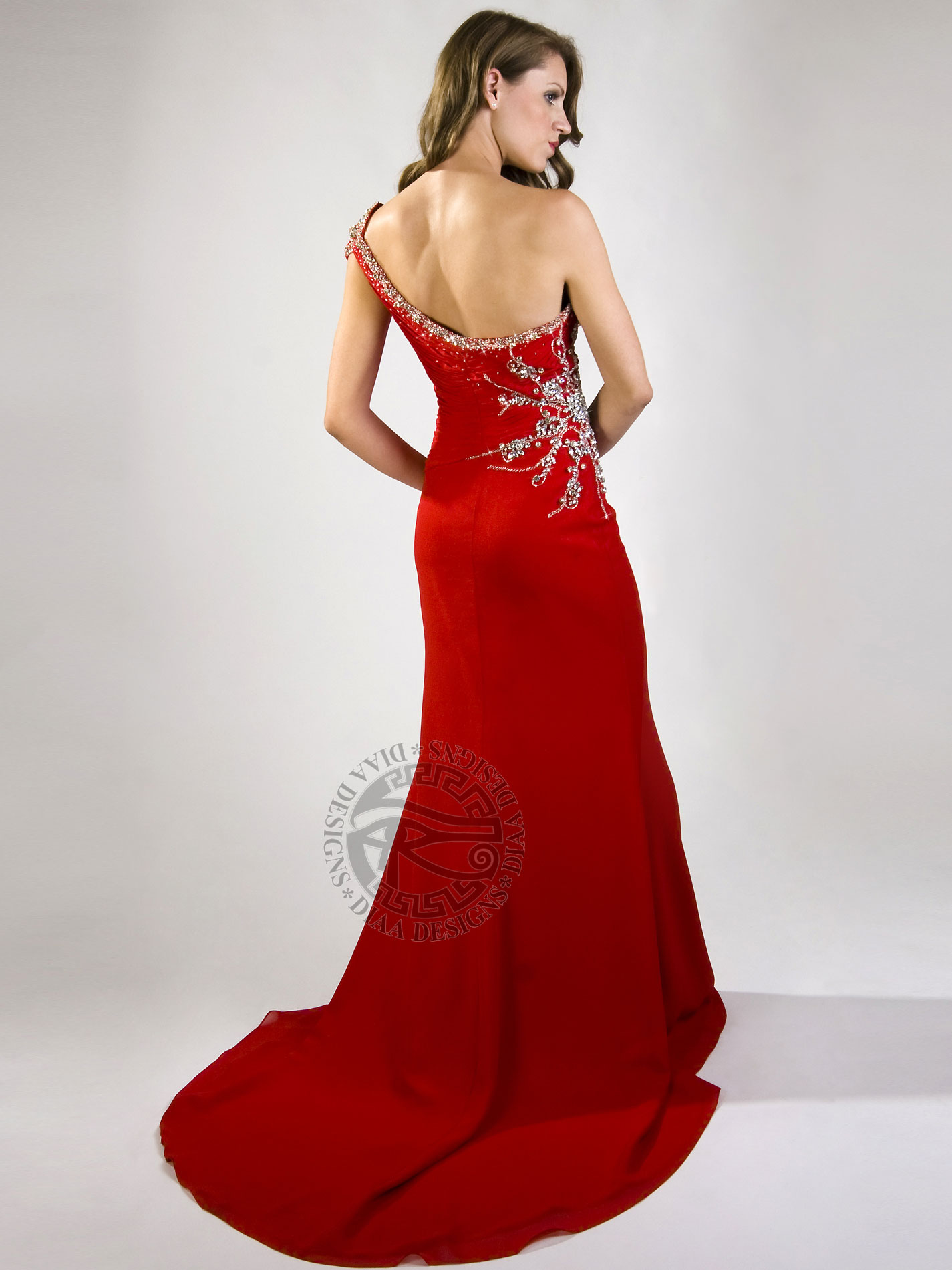 Sparkle in this stunning one shoulder sweetheart dress that comes with optional beaded strap, high slit and train.